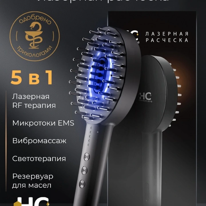 Инфракрасная расческа 5 в 1 с массажем, EMS-микротоками, RF-терапией, HoneуCare
