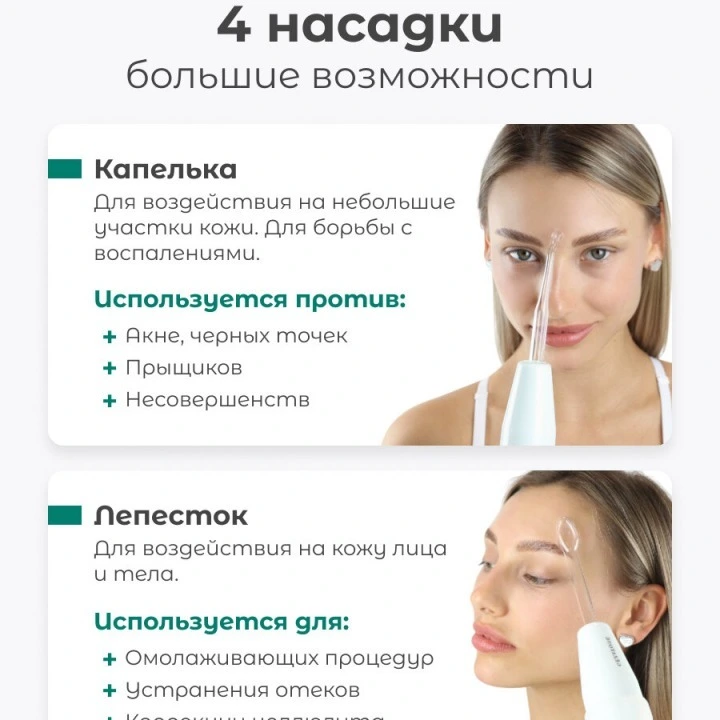Дарсонваль, инструкция, подарочная коробка и 4 сменные насадки: