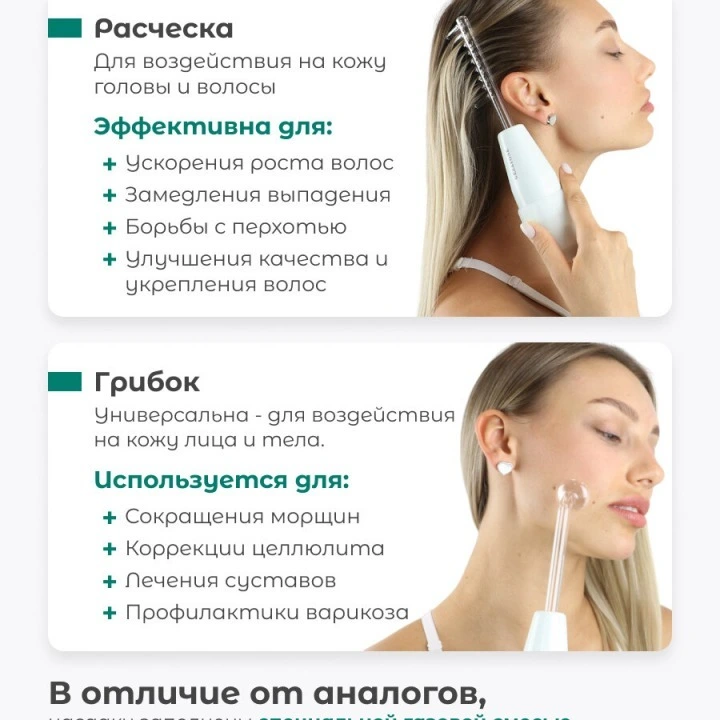 - Грибок – универсальная насадка для лица и тела, профилактика варикоза, коррекция целлюлита.