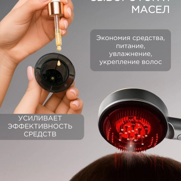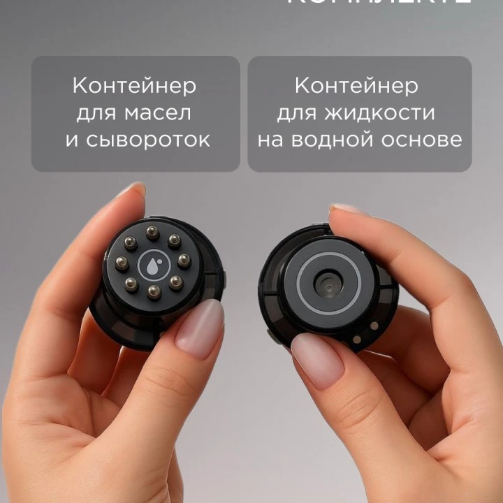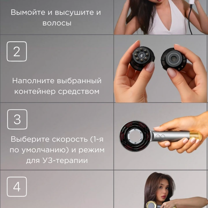 - 2 контейнер для автораспределения средств (масла, густые сыворотки): функция встроенного дозатора позволяет равномерно распределять средства для ухода, обеспечивая глубокое питание и увлажнение волос.