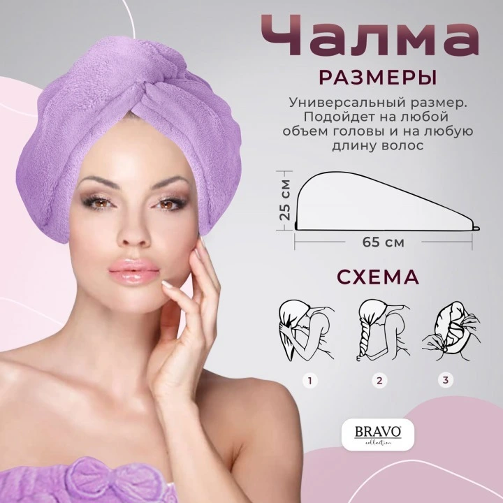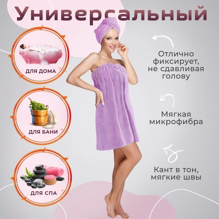 Набор килт с чалмой из быстросохнущей микрофибры, сиреневый, Bravo