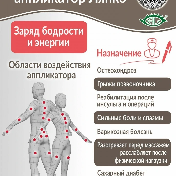 ВАЛИК ЛЯПКО - устройство для проведения массажа любого участка тела, действие которого заключается в поверхностном множественном иглоукалывании. Валик помогает в лечении опорно-двигательного аппарата, головных болей, варикозного расширения вен, при травмах и переломах, при выпадении волос. Используется для восстановления после инсульта, помогает нормализовать давление, устранить бессонницу.