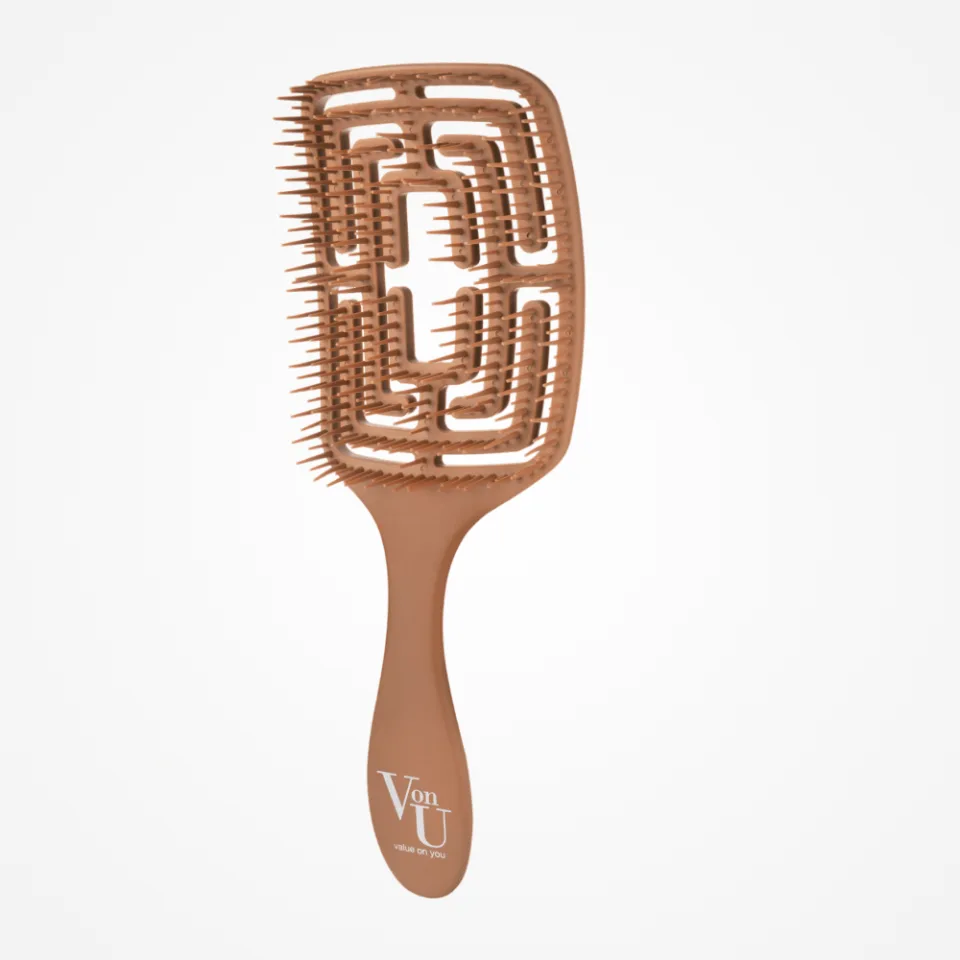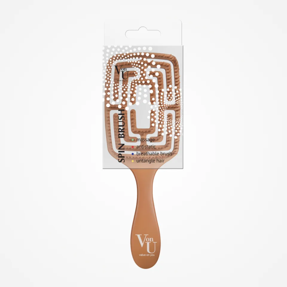 Секрет инновационной массажной антистатической гибкой расчески для волос SPIN BRUSH корейского бренда Von-U заключается в мягком и гибком соединении зубцов, образованном из литого материала для лёгкого расчесывания.