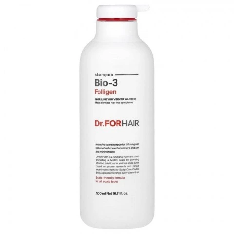 Szampon przeciw wypadaniu włosów Folligen koreańskiej marki Dr.ForHair delikatnie pielęgnuje włosy i skórę głowy, zwalcza wypadanie włosów.