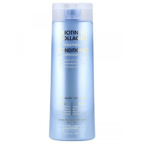 Odżywka do włosów marki Giovanni wzmacnia cebulki i nawilża włosy, otulając każde pasmo. Kolagen i biotyna działają razem, aby aktywować mieszki włosowe, nadać włosom niezwykłą strukturę i siłę oraz stymulować wzrost nowych włosów.