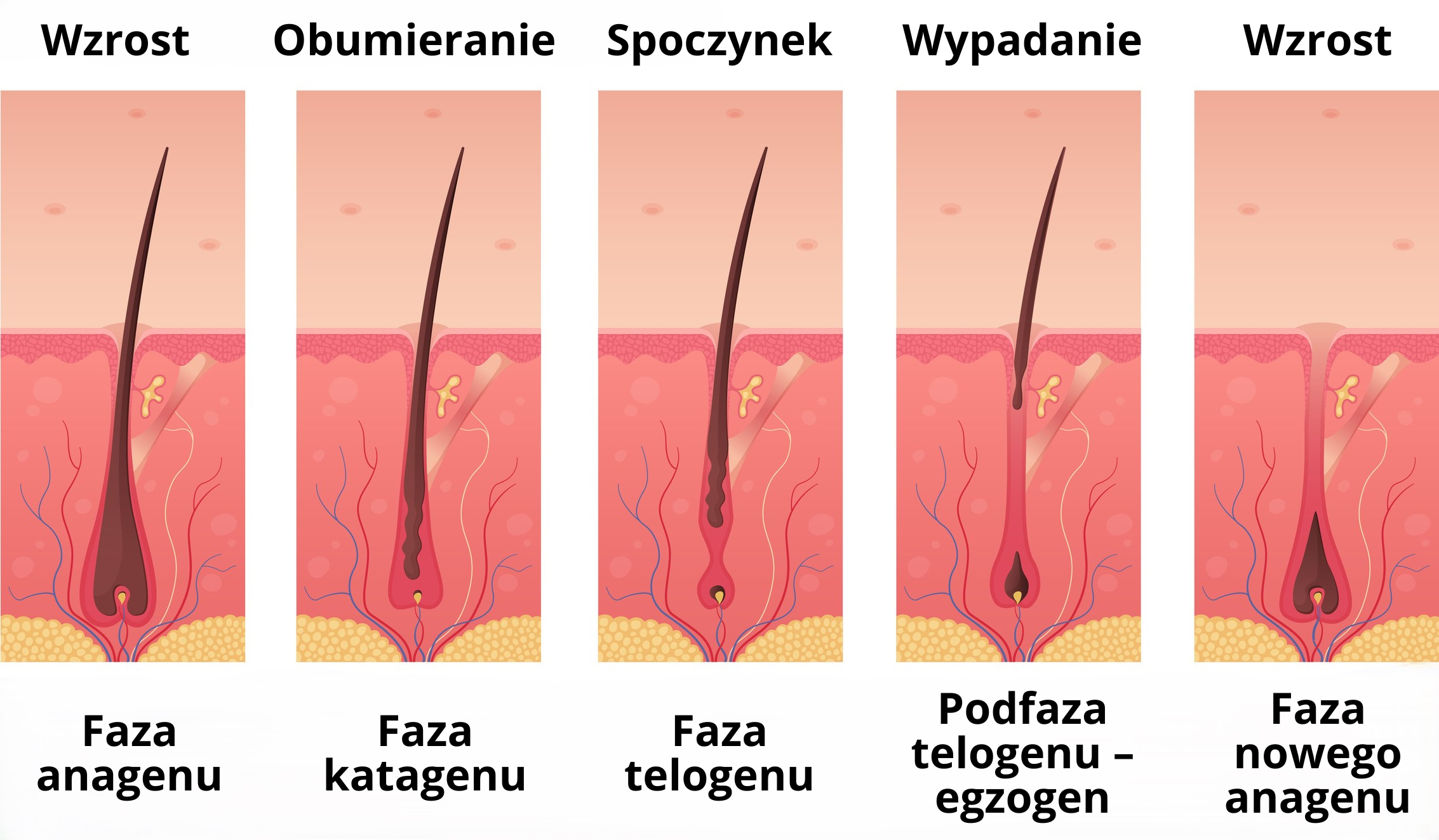 CYKL wzrostu włosa to naturalny i dynamiczny proces, w trakcie którego włos rośnie, umiera i wypada. Cykl składa się z następujących faz: