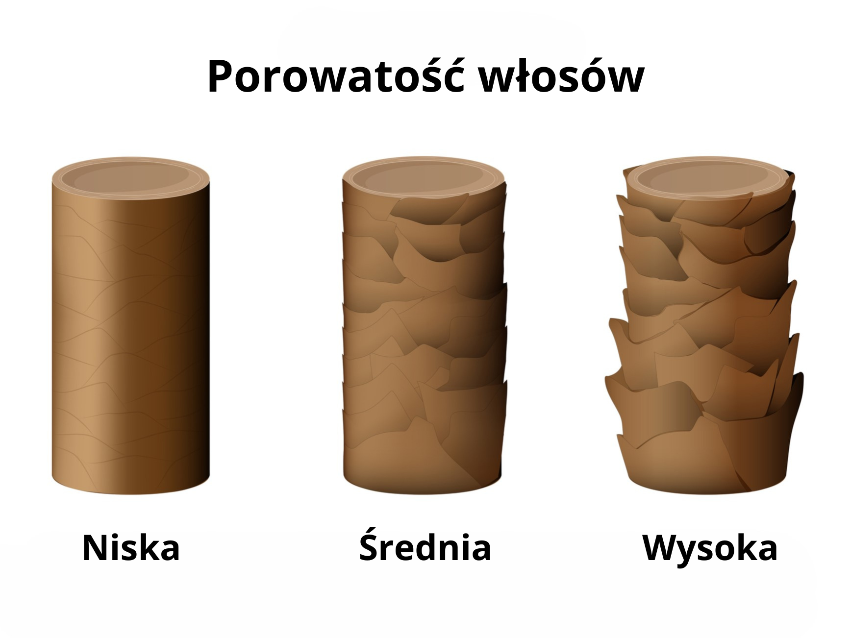 Porowatość to zdolność włosów do wchłaniania i zatrzymywania wilgoci wewnątrz. Zależy ona od stopnia uszkodzenia struktury zewnętrznej warstwy ochronnej włosa – kutykuli, której keratynowe łuski przypominają dachówki i układają się w 6-10 warstwach.