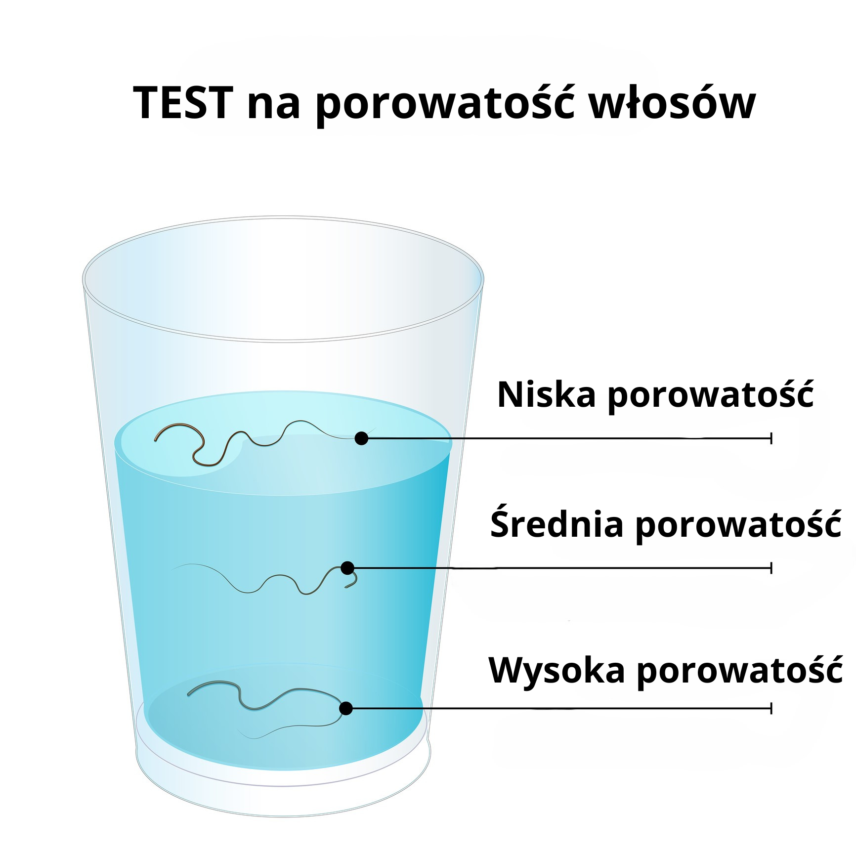 ✔️ Test z zanurzeniem w wodzie Test przeprowadza się na czystych i suchych włosach, umytych szamponem bez silikonów (tworzą one warstwę ochronną na powierzchni włosów). Należy umieścić włos w szklance z wodą i obserwować go przez 2-3 minuty. Porowaty włos szybko wchłonie wodę i zatonie. Włos o średniej porowatości będzie wchłaniał wilgoć nieco dłużej, ale również zatonie. Zdrowy włos ze zwartą kutykulą i niską porowatością będzie długo utrzymywał się na powierzchni wody.