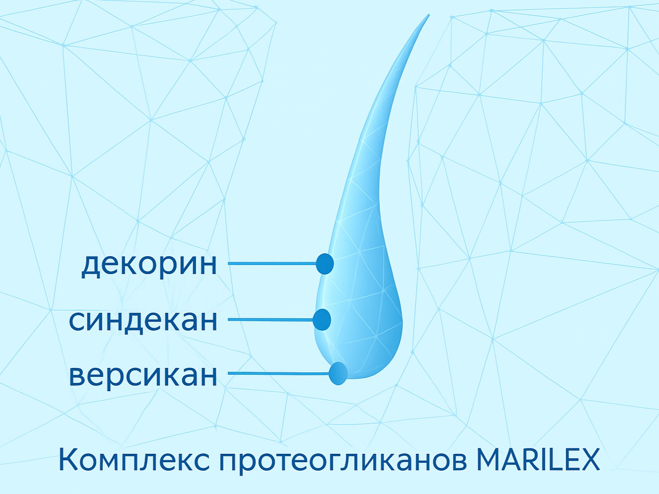 Marilex® - запатентованный морской комплекс, который, по заявлению производителя, помогает продлить фазу роста волос (анаген) и поддерживать нормальный цикл роста. Marilex содержит концентрированную комбинацию специфичных для волос белков протеогликанов: версикан, декорин и синдекан. Эти биоактивные макромолекулы всасываются эндоцитозом из тонкого кишечника и воздействуют на реплицирующиеся части волосяных фолликулов, т. е. участвуют в формировании и поддержании жизненного цикла волосяных фолликулов кожи головы.