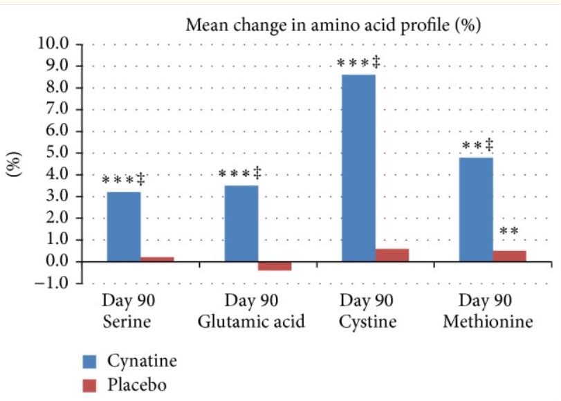 Увеличение соотношения аминокислот, особенно цистина, который является основным компонентом Cynatine, также показывает биодоступность Cynatine в организме.