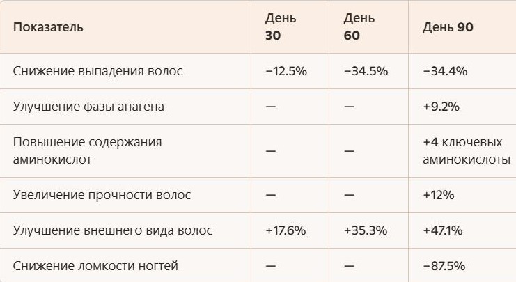 Результаты показали, что прочность волос увеличилась на 5,9% через 90 дней приема Cynatine.