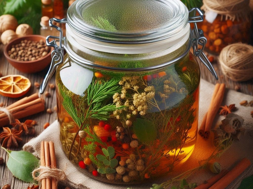 - 6 ст. ложек суммарно сушеных трав (розмарин, мята, кора дуба, крапива, ромашка)